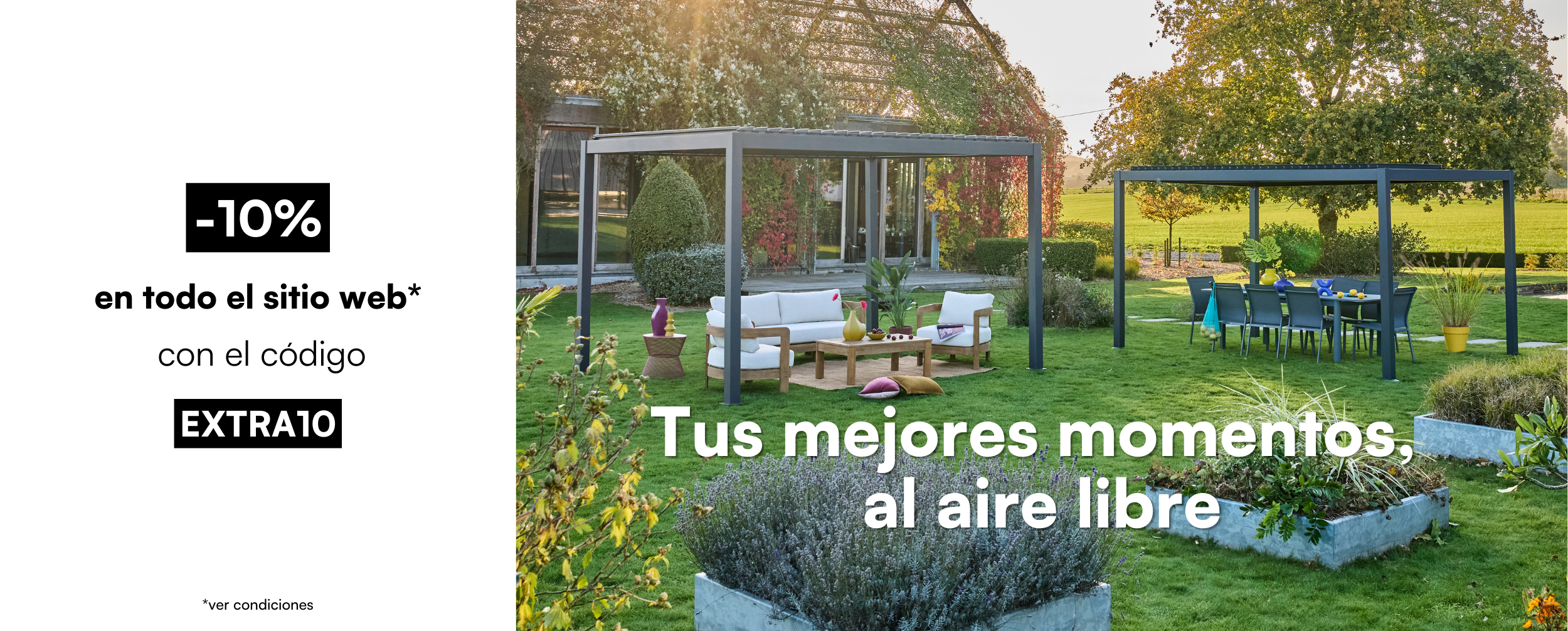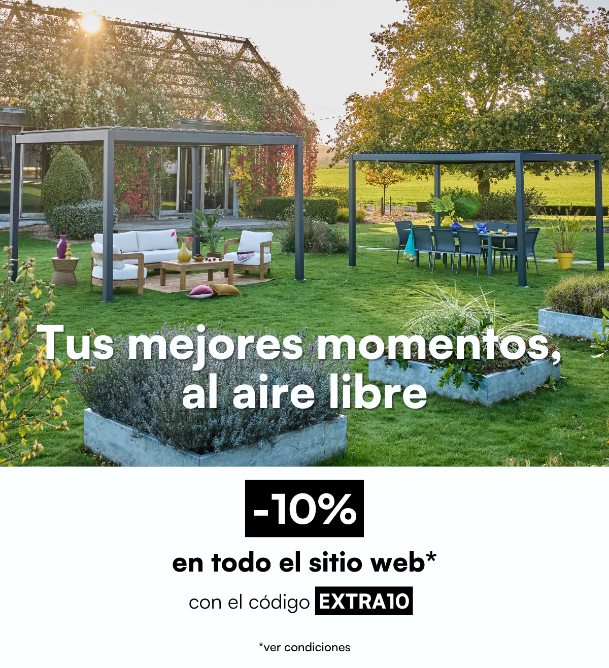 Para disfrutar tu terraza y jardín, podrás encontrar en nuestra tienda una selección de pérgolas y cenadores. Fáciles de montar y desmontar. Te permitirá disfrutar de tu jardín a la sombra. Ya sea bioclimática, con cortinas o simples, estamos seguros de que en sweeek encontrarás el modelo de pérgola adecuada.