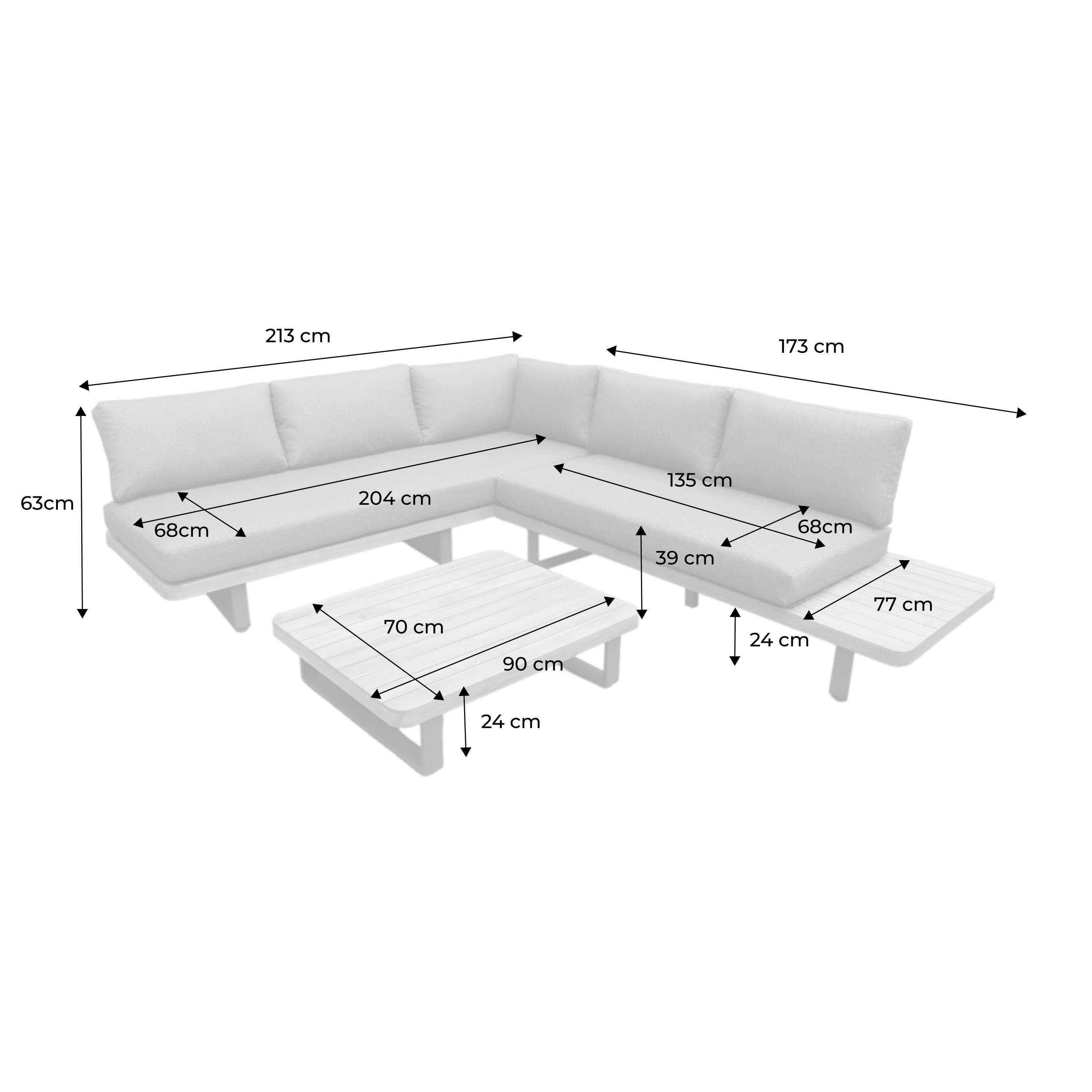 Conjunto de jardín de esquina de madera de acacia y aluminio para 5 personas