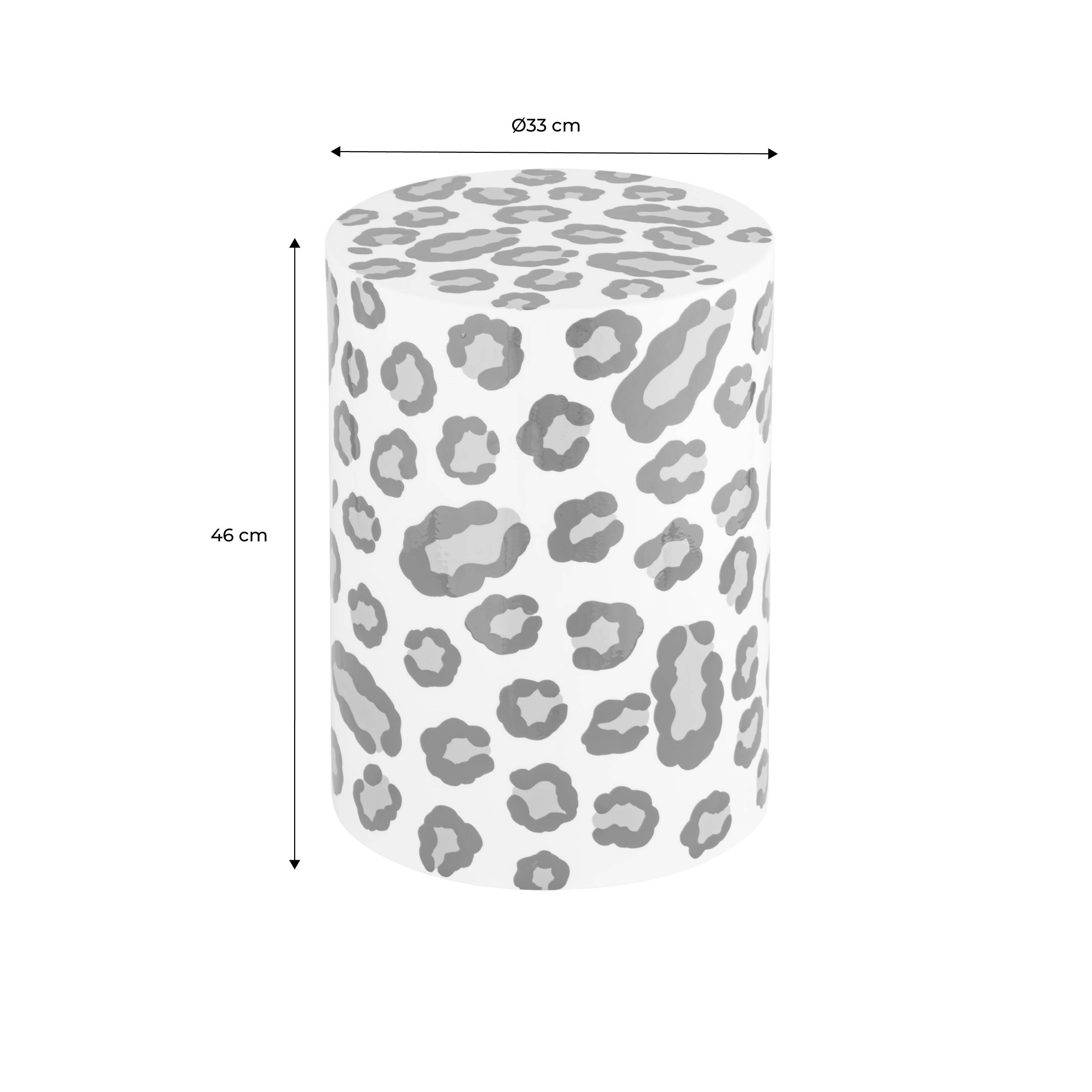Mesa auxiliar, mesita de noche de acero esmaltado, diseño de leopardo