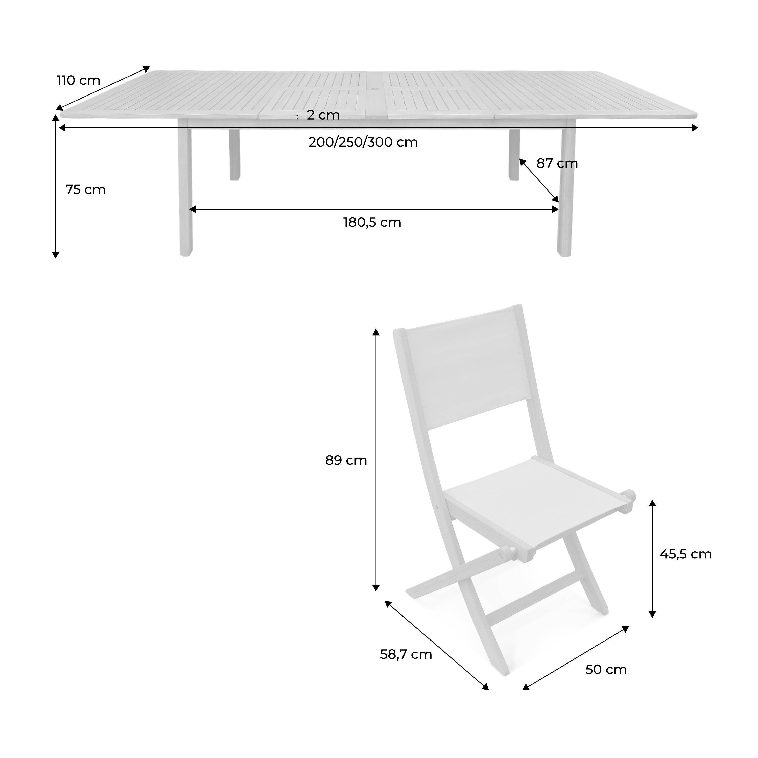 Mesa de jardín extensible de madera de eucalipto con 12 sillas