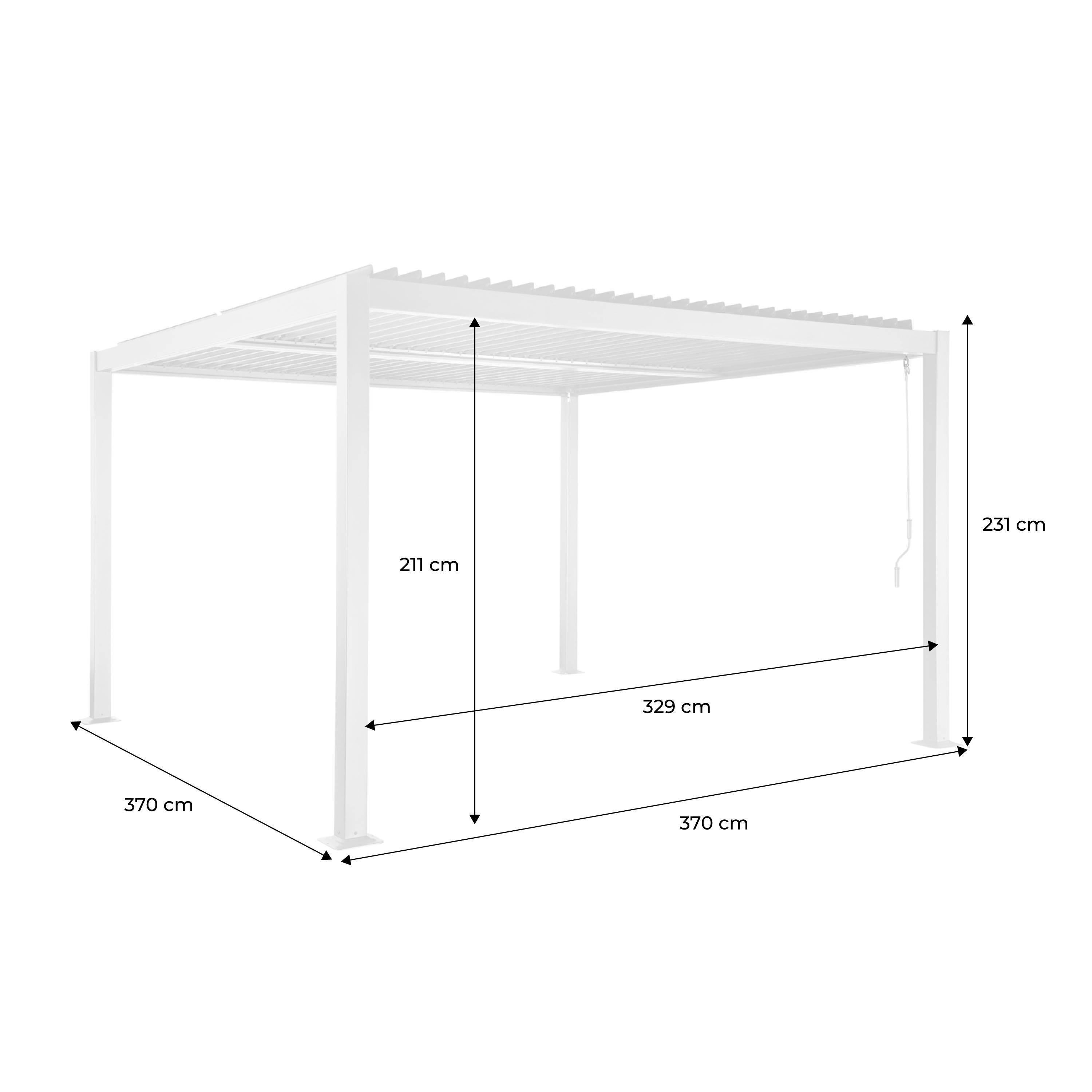 Pérgola bioclimática de aluminio y acero con lamas orientables, 3,6x3,6m